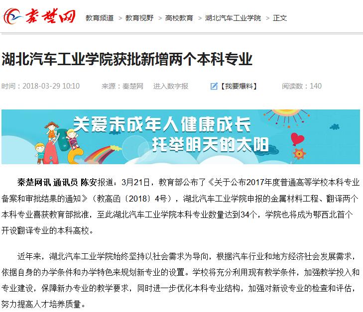 【秦楚网】湖北汽车工业学院获批新增两个本科专业