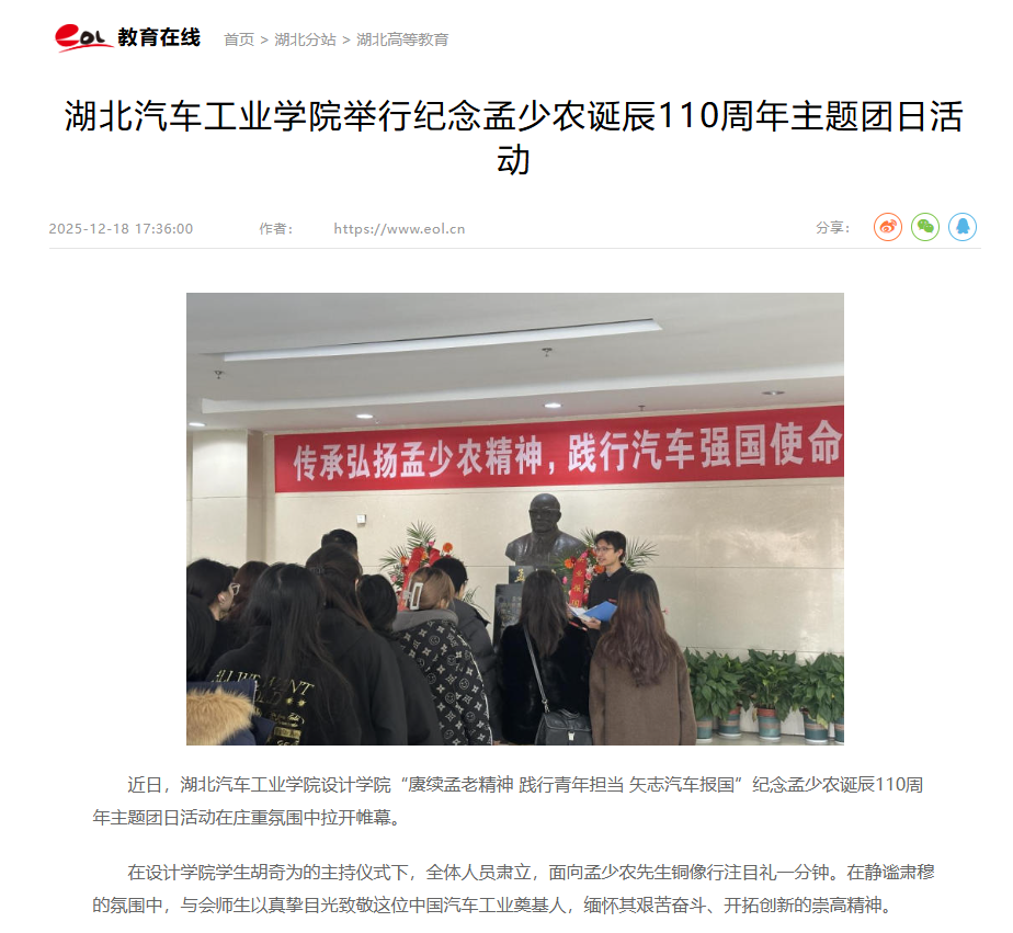 【中国教育在线】湖北汽车工业学院举行纪念孟少农诞辰110周年主题团日活动