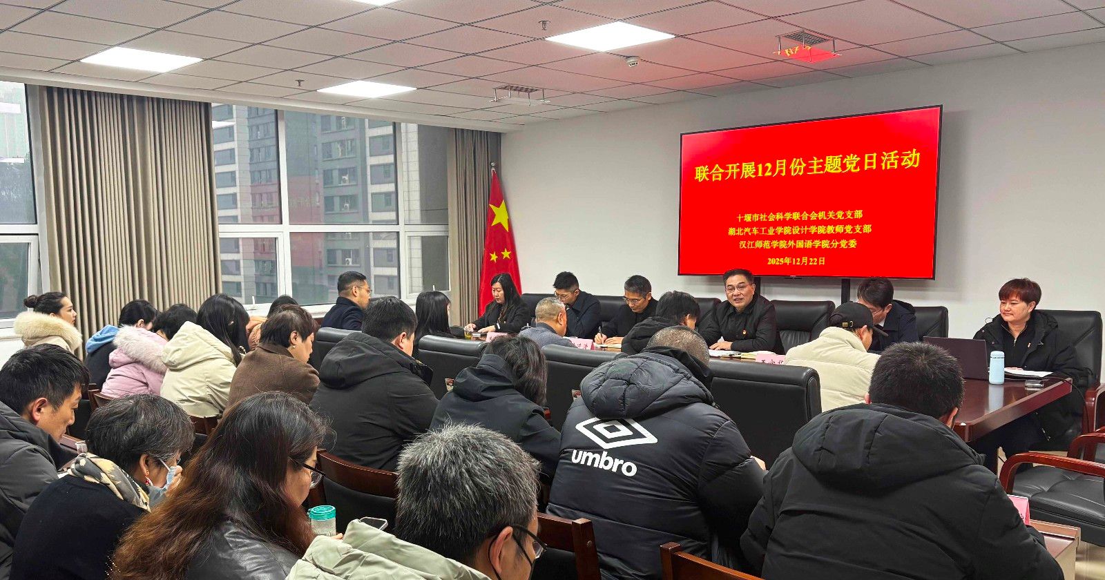 本网讯(文/图 童晶)12月22日下午,设计学院教师党支部与十堰市社科联机关党支部、汉江师范学院外国语学院教师党支部,在市社科联1118会议室联合举办《深入学习贯彻二十届四中全会精神 以高质量调查研究提升智库服务水平》主题党日活动。