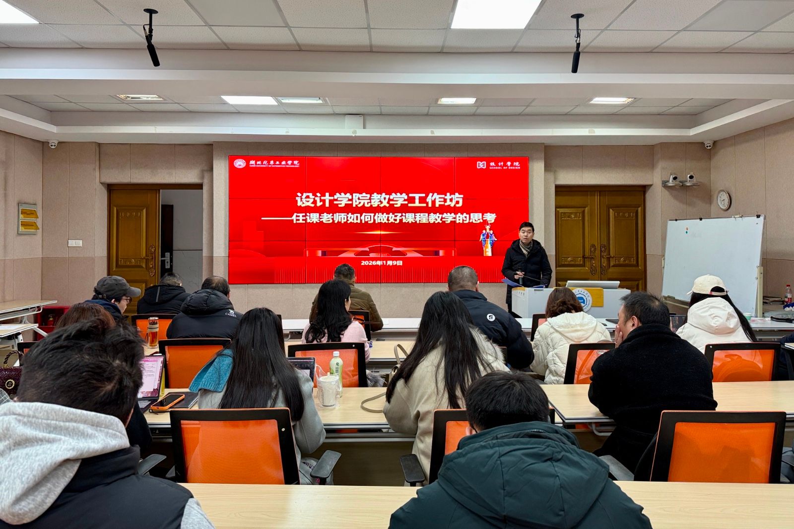 本网讯(文/图 黄萌颖)为进一步提升教师教学能力,推动课堂教学质量持续改进,1月9日上午,设计学院邀请校教学督导副组长常治斌教授在1305多功能报告厅做教学专题讲座,主题为“任课教师如何做好课程教学的思考”。设计学院党政领导班子及全体教师参加培训,活动由学院副院长龚青山主持。