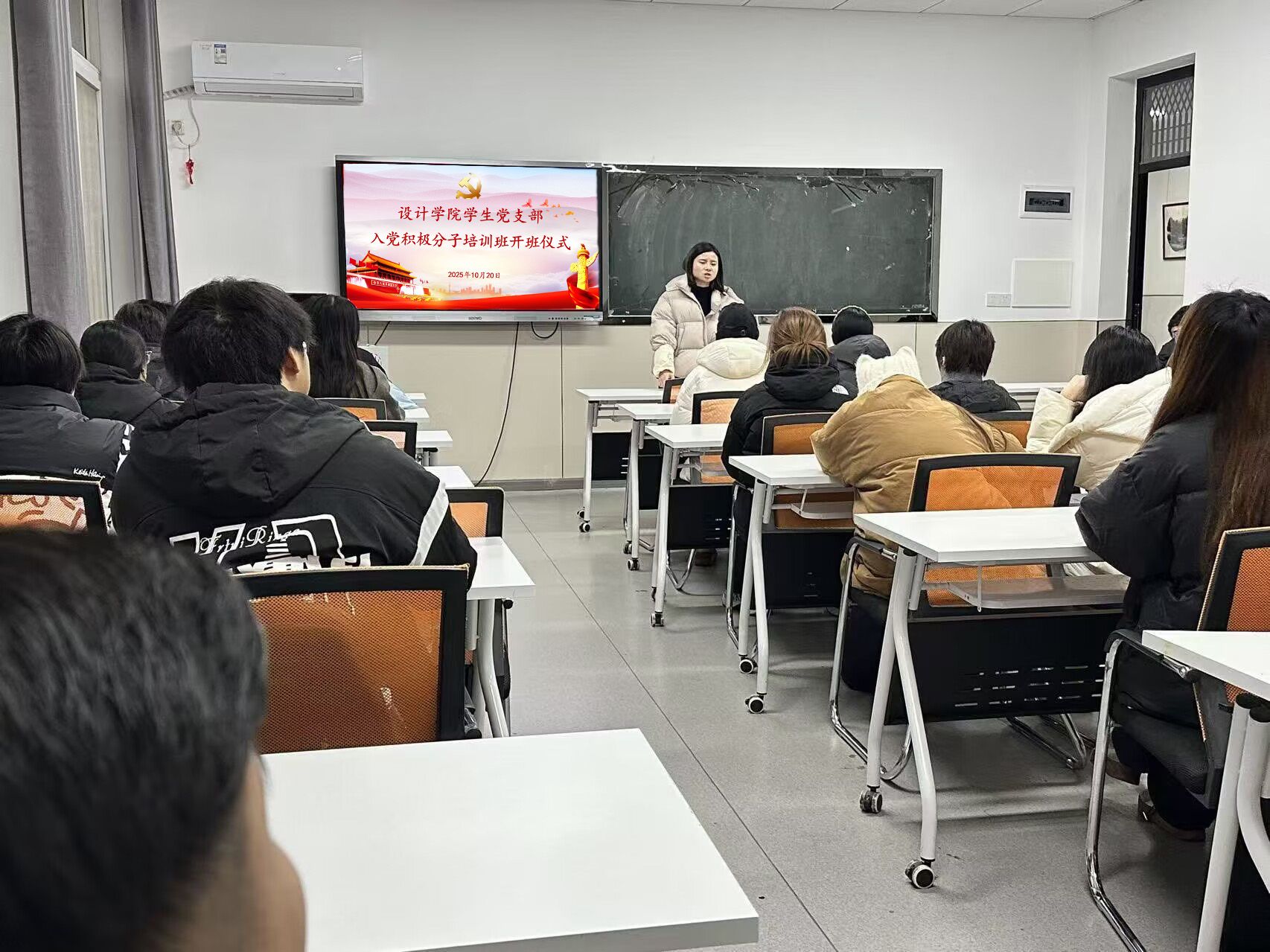 为进一步加强学生党员队伍建设,夯实党员发展基础,引导入党积极分子端正入党动机、坚定理想信念、提升理论素养,10月27日下午,设计学院学生党支部在1408教室举行新一期入党积极分子培训班开班仪式。学生党支部书记王曼及全体培训班学员参加。
