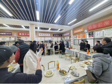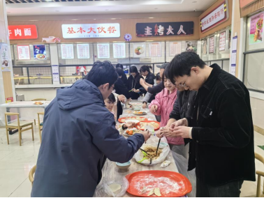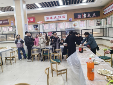 2024年1月14日,在李园食堂一楼组织全体教职工包饺子。