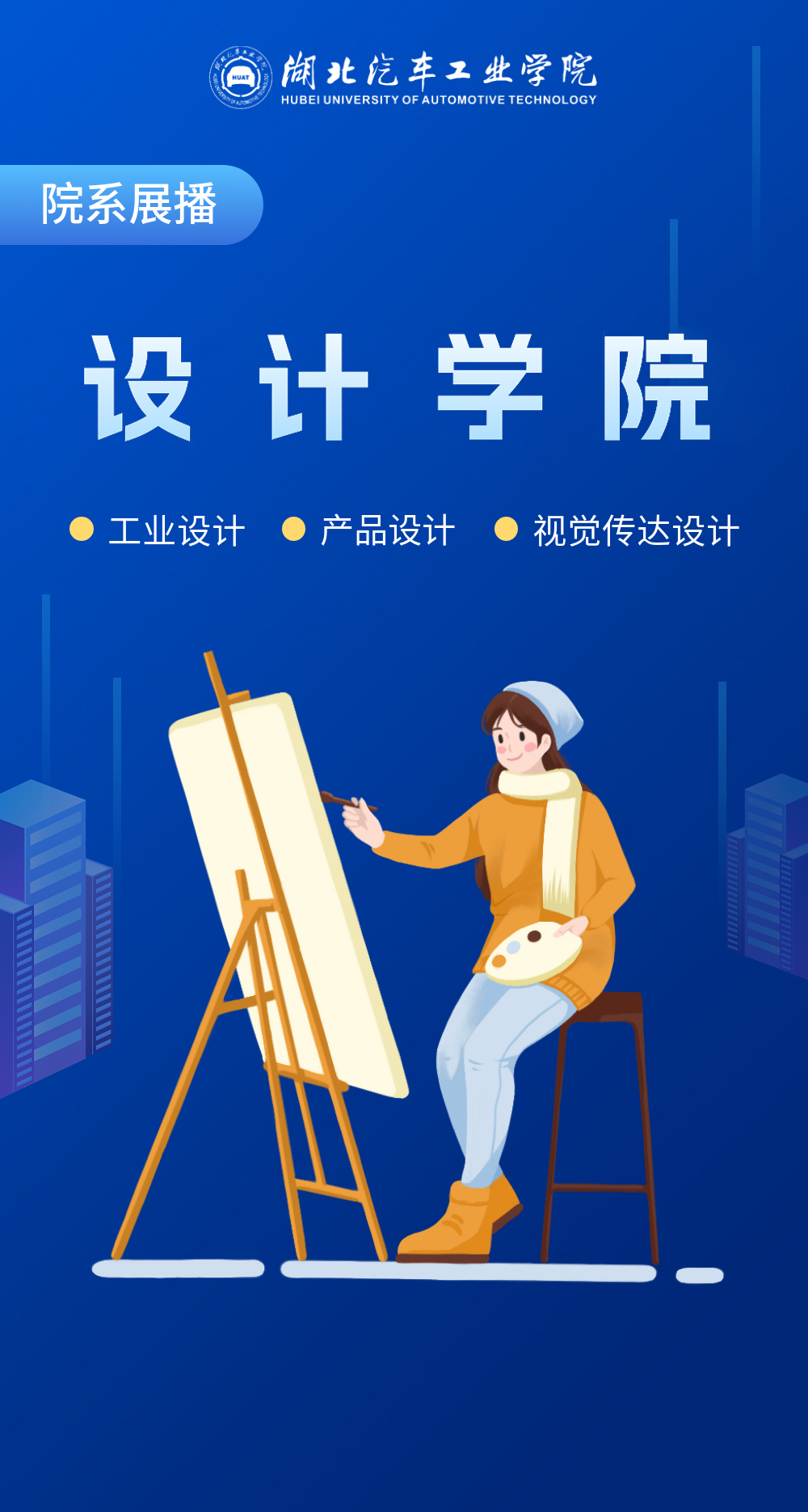 湖北汽车工业学院设计学院前身为机械工程学院工业设计教研室,2000年开设工业设计专业(理工类)并招生,2002年开设工业设计专业(艺术类)招生,2009年成立工业设计系,2020年11月成立艺术与设计学院。现有工业设计(理工类)、产品设计(艺术类)、视觉传达设计(艺术类)3个本科专业,其中工业设计为汽车造型设计方向,产品设计专业分汽车造型设计和工业产品设计两个方向,产品设计专业为省级一流专业建设点。2025年1月学院更名为设计学院。